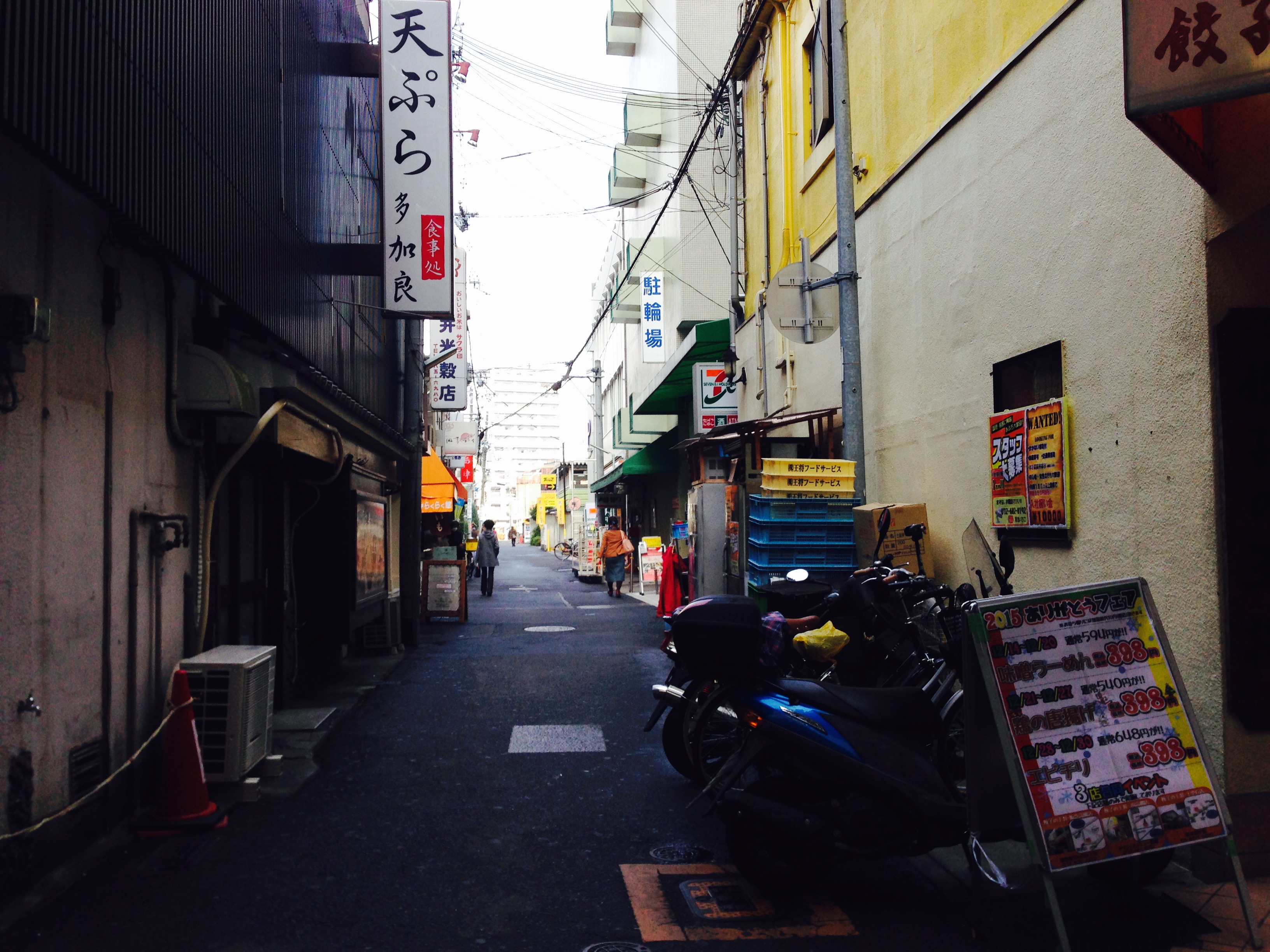 まっすぐ歩いてるとすぐ右手に細い道があるのでそこを曲がります。角には王将があります。