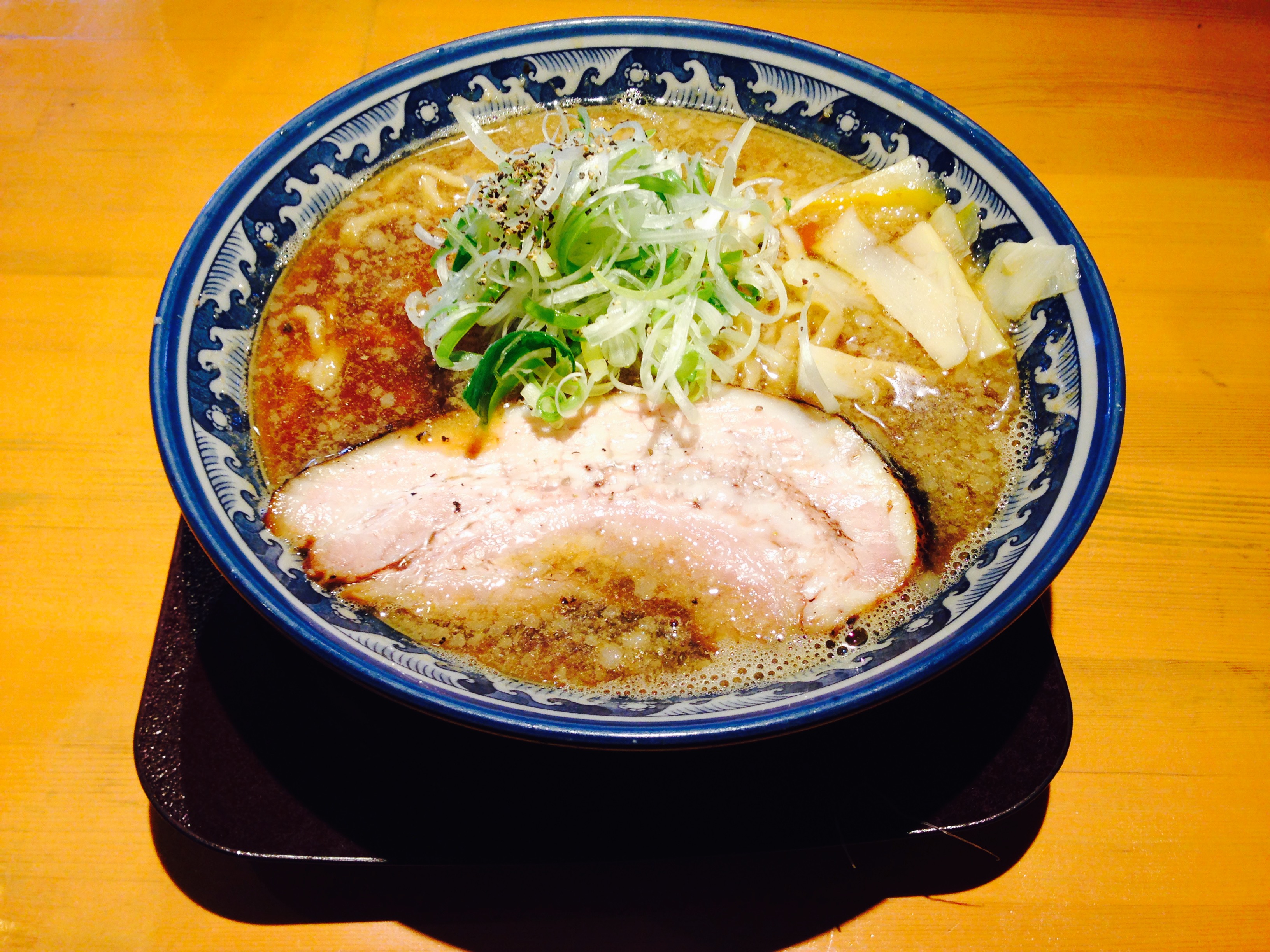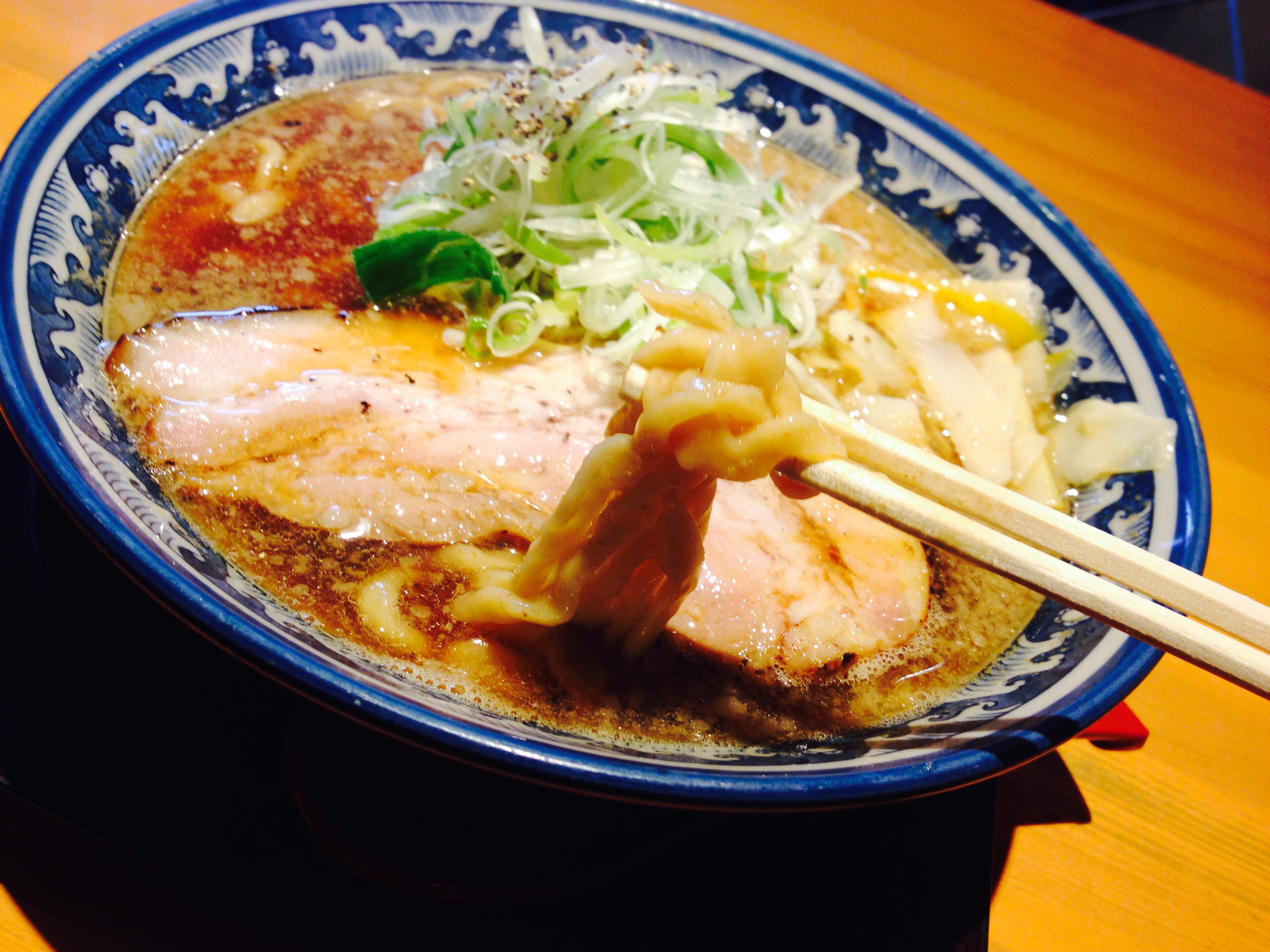 食べるとモチモチでコシもありきしめんみたい。玉ねぎ、白髪ねぎ、チャーシュー、メンマが入っています。