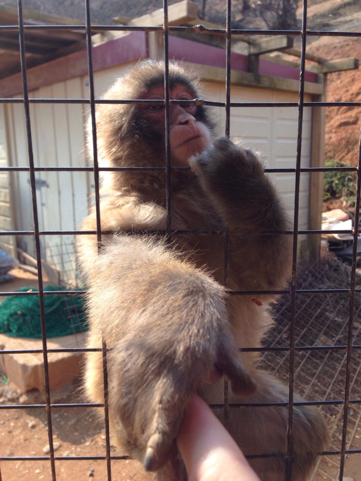 このこは大人しめですが、網から餌くれくれと手をのばしてキャッキャさわぐ猿たち、最初は恐怖 です(笑)
